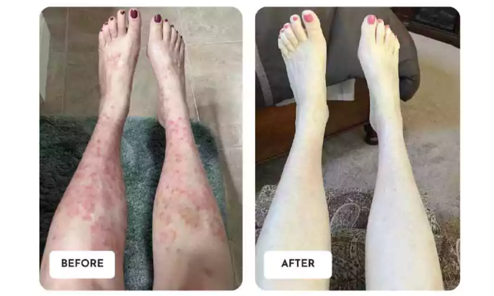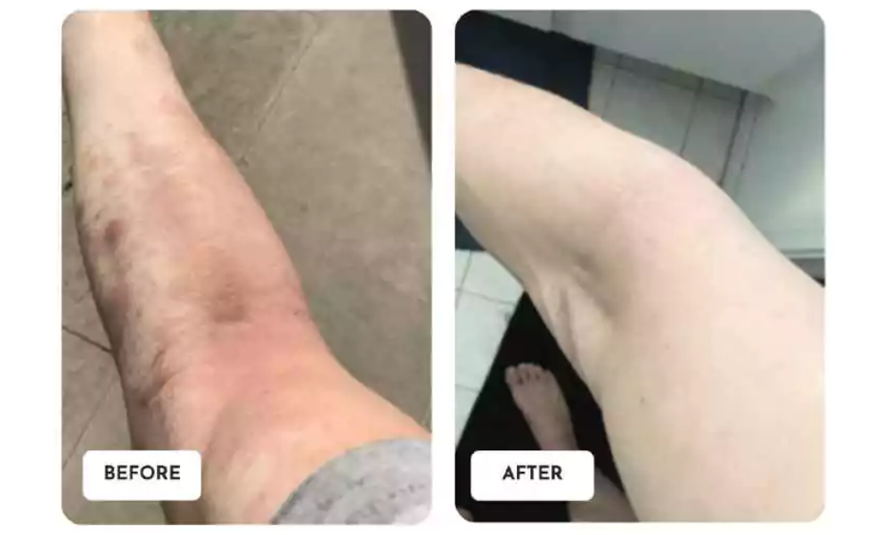 “Mes jambes étaient rouges et enflammées, elles ont retrouvé une peau normale et saine.”